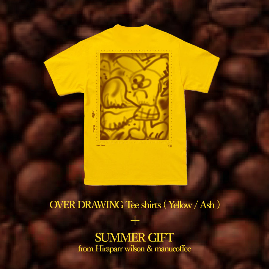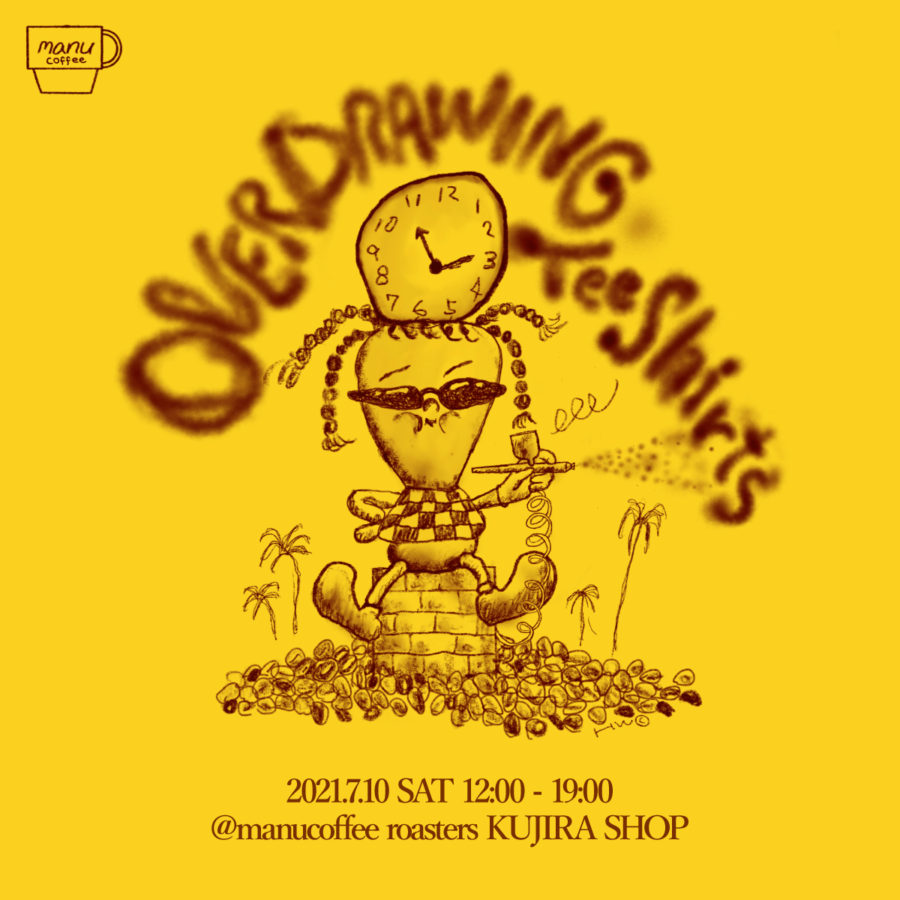 今週土曜日7/10(土)、マヌコーヒー ロースターズ クジラ店にてHiraparr Wilsonによる「OVER DRAWING Tee shirts」を実施します。