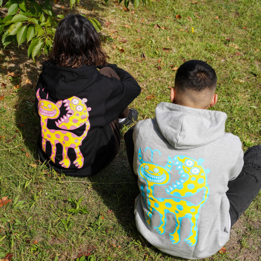 ストリートアートに加えて、さまざまなプロダクトや作品を残しワールドワイドに活躍。メッセンジャーとしての経歴も持ち、幅広い分野から注目を集めるYoshi 47氏との新作パーカー!