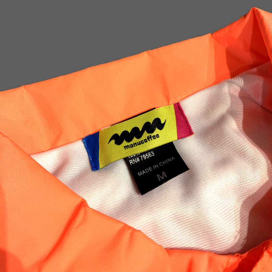 ボディはアメリカのクラシックなコーチジャケットの雰囲気を残しつつ、少しだけ着やすい雰囲気のモダンシルエット。BEIMAR製。内側にライニング、ラグランスリーブ、しっかりしたリブ、裾のドローコード。首元にはマヌコーヒーのタグ付き。軽い雨ならしのげます。