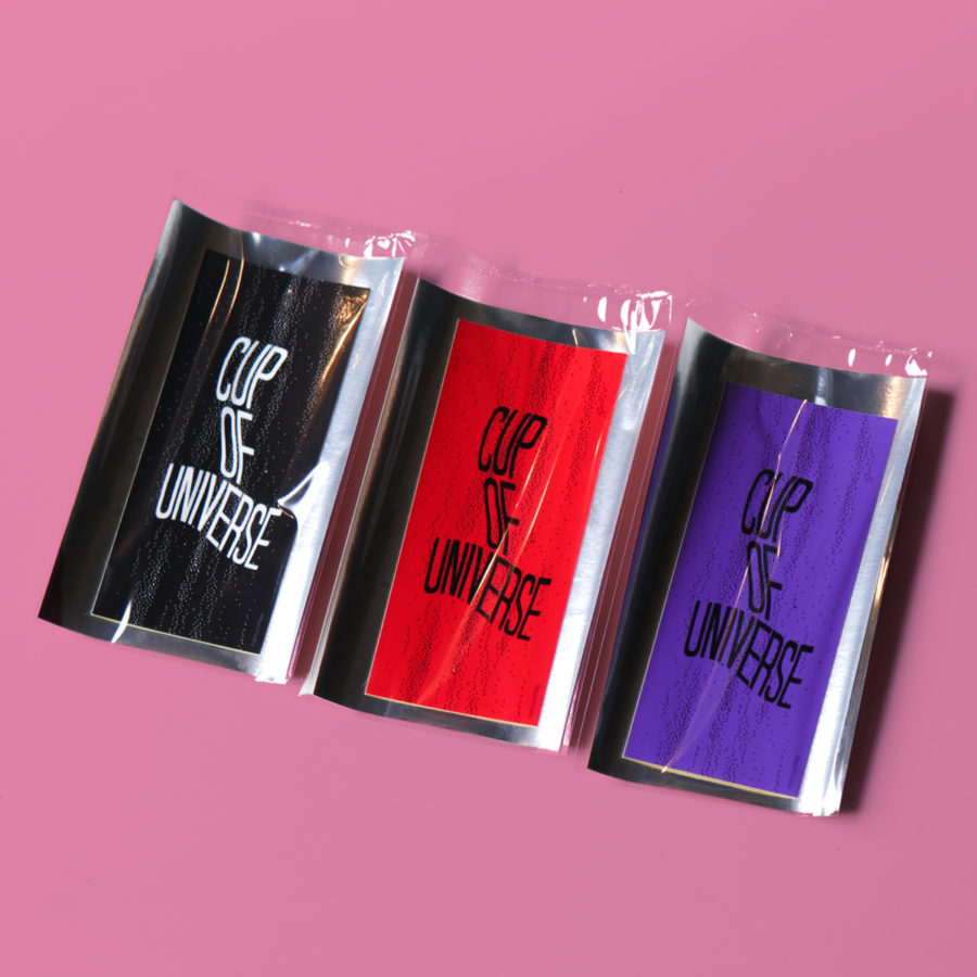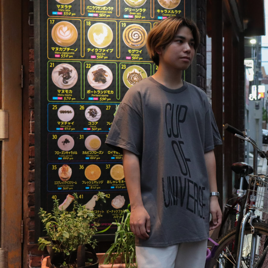 三重野龍氏によるNEWデザインTシャツ&ステッカーがリリース!マヌコーヒーのテーマ、”CUP OF UNIVERSE(カップ一杯の宇宙を)”のゆらめくデザイン。