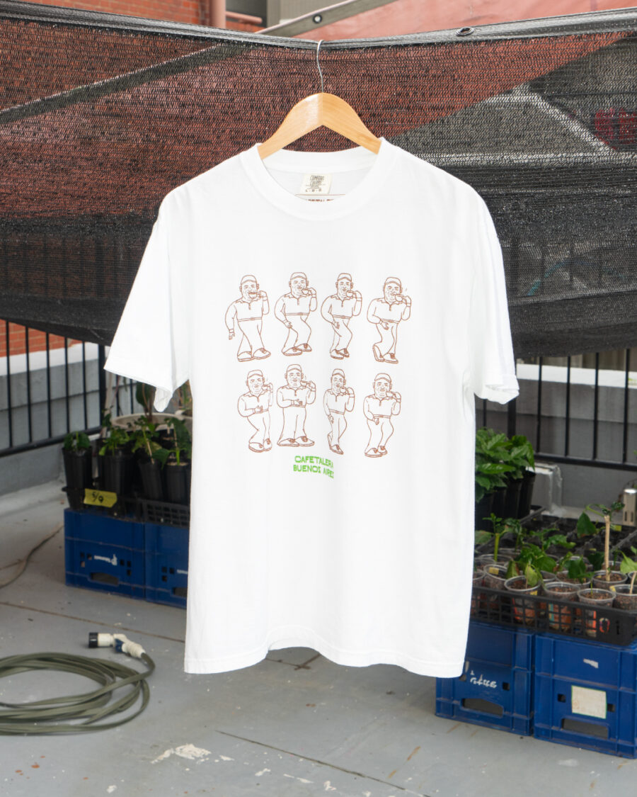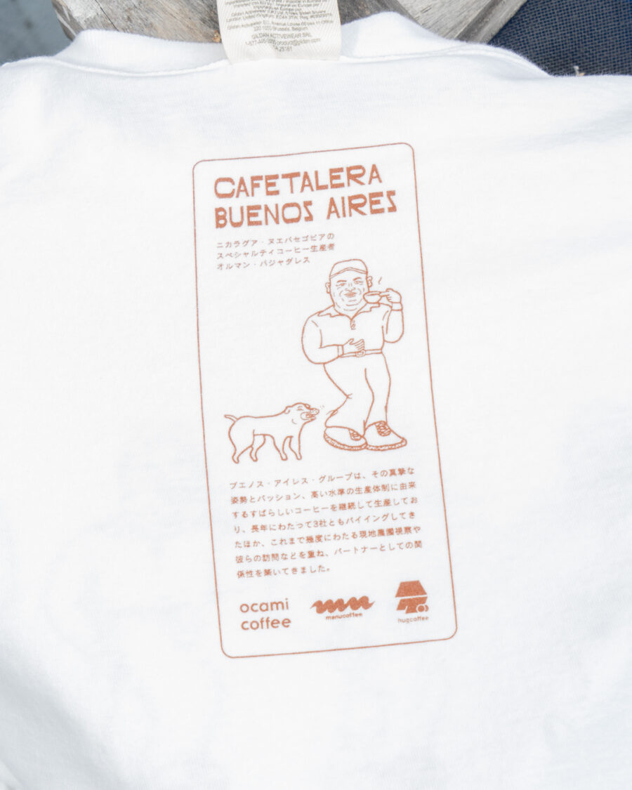Tシャツに描かれているのは、ニカラグアの生産者グループ「ブエノス・アイレス・グループ(Cafetalera Buenos Aires)」の農園主であるオルマン・ヴァジャダレス(Olman Vellederaz)氏。